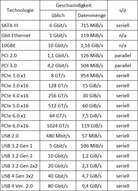 Wende dein Wissen zu Schnittstellen und deren Geschwindigkeiten an, um die folgenden Problemstellungen zu lösen.