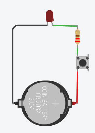 Bauen Sie in Tinkercad die folgende Schaltung nach und fügen eine Diode hinzu. Verbinden Sie anschließend alle Bauteile so, dass die Glühbirne in der Simulation leuchtet.